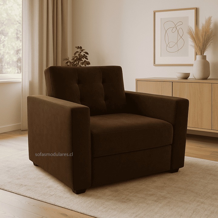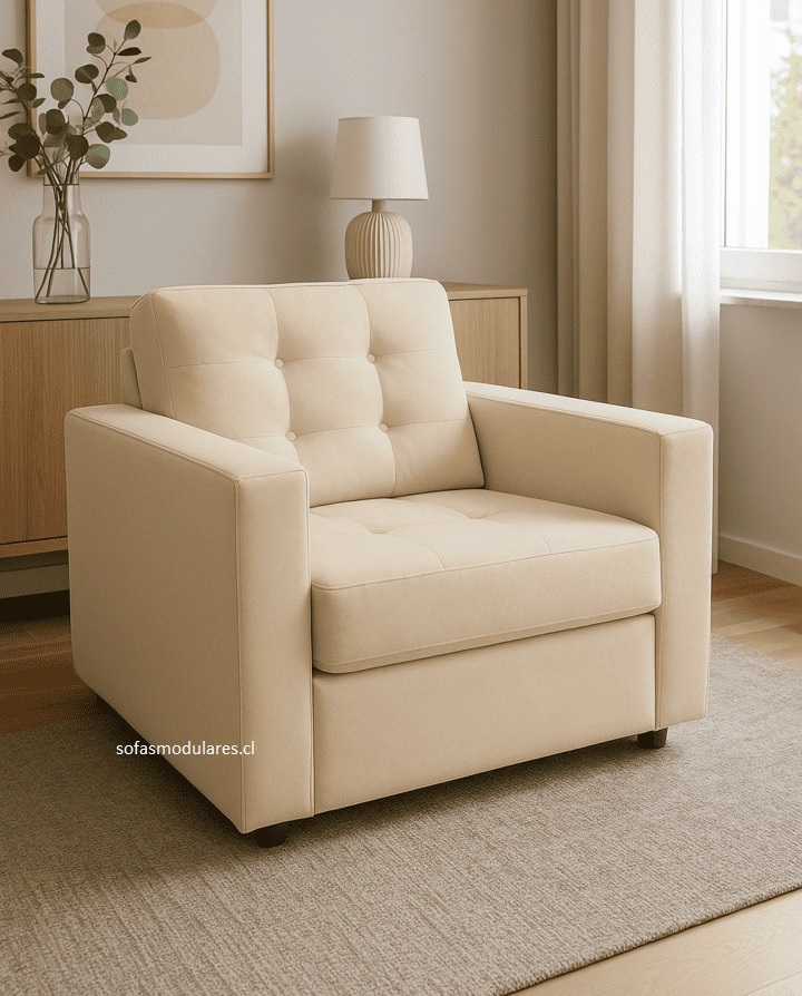 Nuestro sofá cama modelo Sevilla de 1 plaza es perfecto para departamentos, estudios y habitaciones de visita. Hecho en Chile con dedicación y garantía, es una solución funcional y elegante.